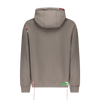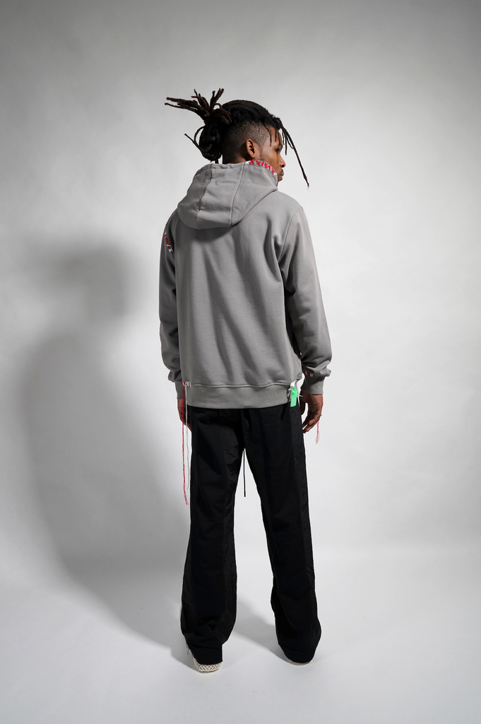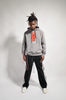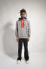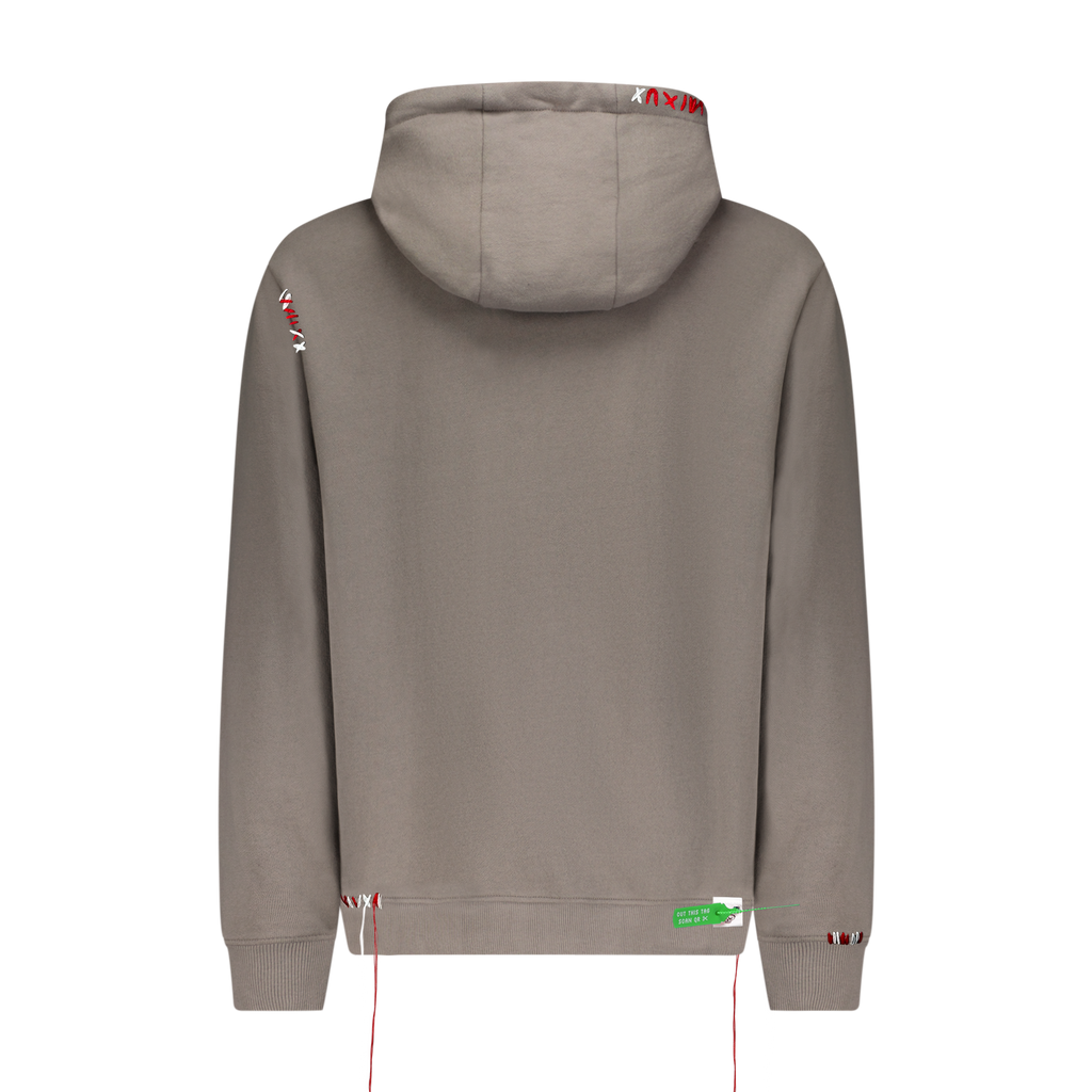 Cotton hoodie with 8-bit appliqué and scattered, deconstructed topstitch threads