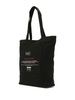 Black cotton canvas tote bag with 8-Bit appliqué at front, cotton lining and screen print on back
