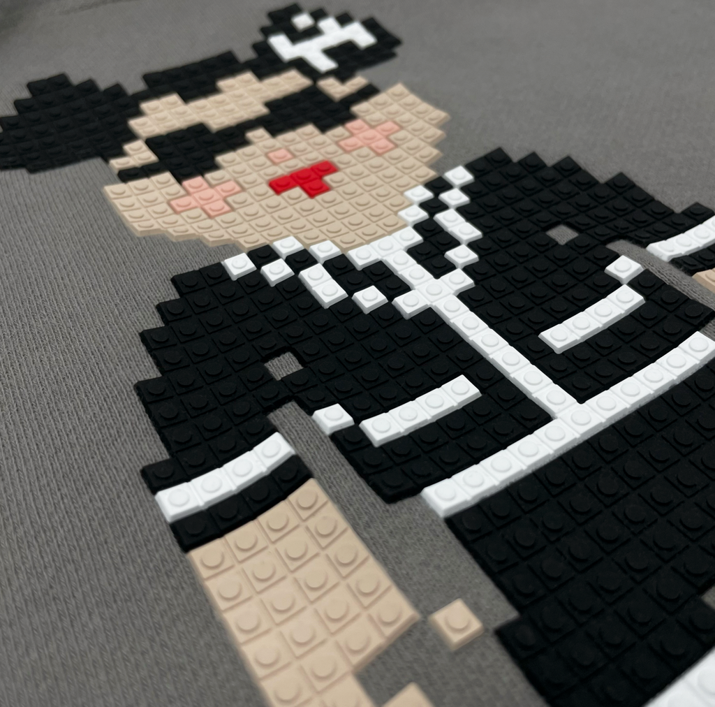 “DOUBLE C BEAR" 8-BIT APPLIQUÉ HOODIE