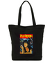 Black cotton canvas tote bag with 8-Bit appliqué at front, cotton lining and screen print on back