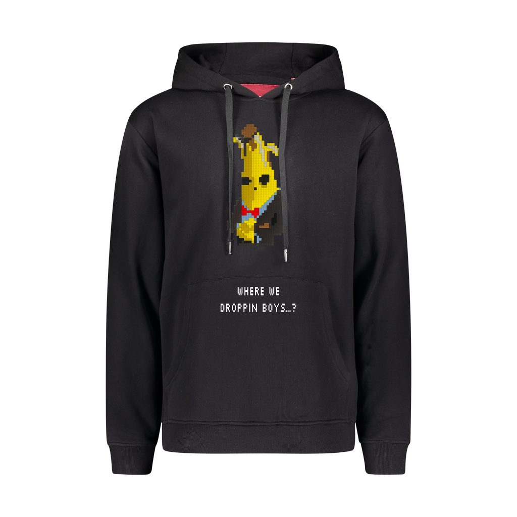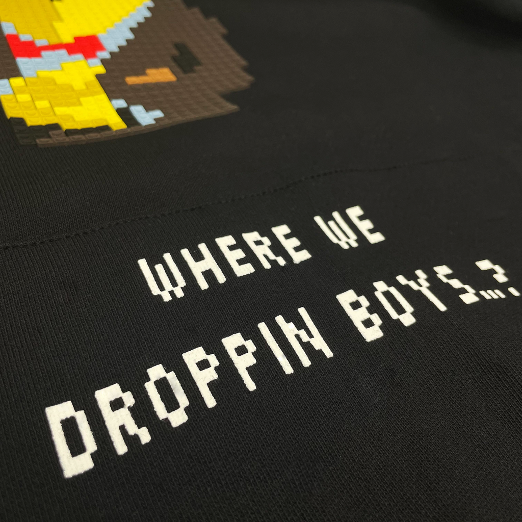 “WHERE WE DROPPIN'" 8-BIT APPLIQUÉ HOODIE