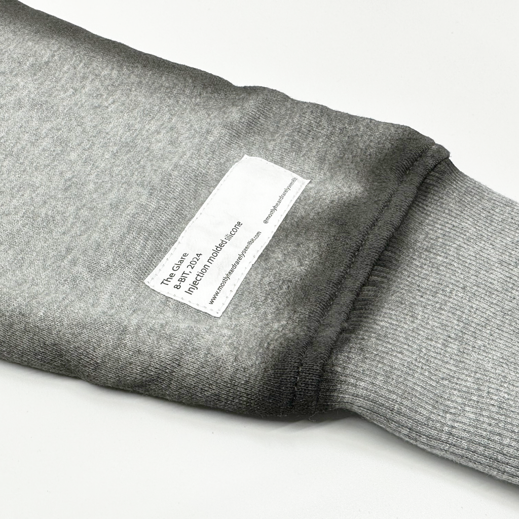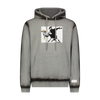 Cotton hoodie wth 8-bit applique, sprayed seam detailing and a printed tyvek label applique