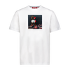 Cotton T-shirt with photo transfer print layered with an "8-Bit" appliqué at chest