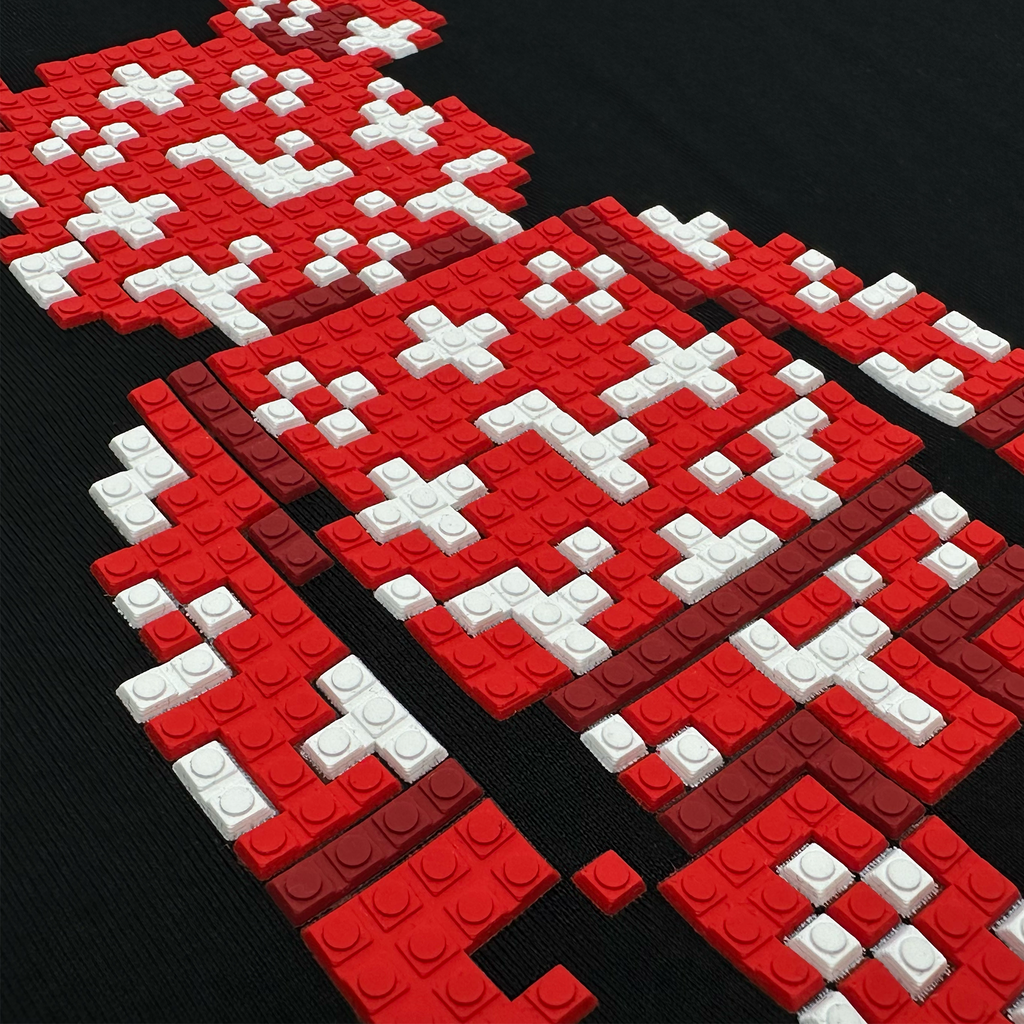 Short sleeve cotton jersey T-shirt. Signature "8-Bit" pixelated silicone appliqué at chest.