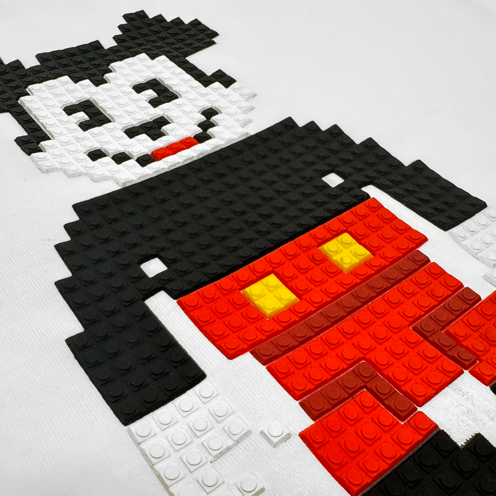 Short sleeve cotton jersey T-shirt. Signature "8-Bit" pixelated silicone appliqué at chest.
