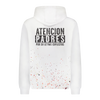 Cotton hoodie with an 8-bit applique, screen print and artisanal hand paint finish