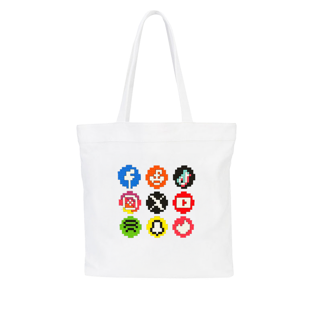 “SOCIAL MEDIA" 8-BIT APPLIQUÉ TOTE BAG