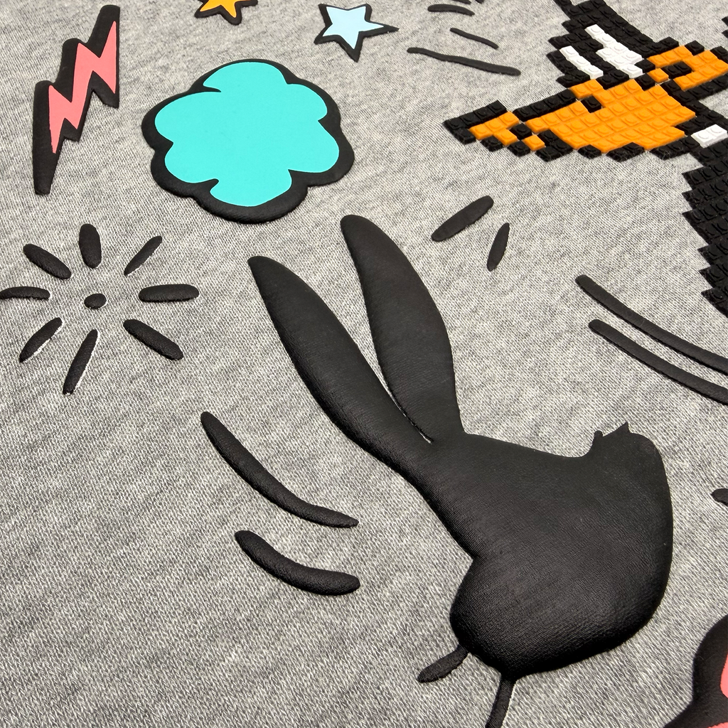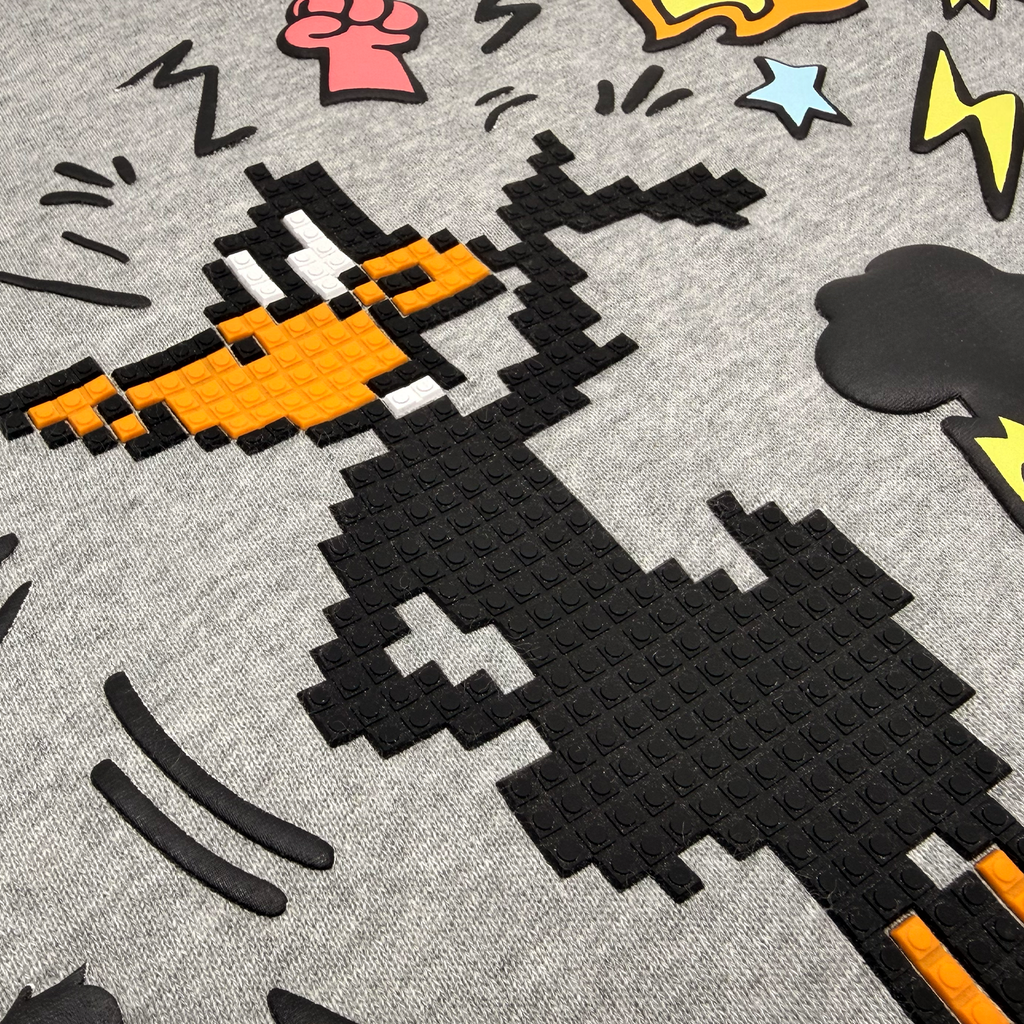* Exclusively developed "DESPICABLE DUCK" 8-Bit appliqué and puff print