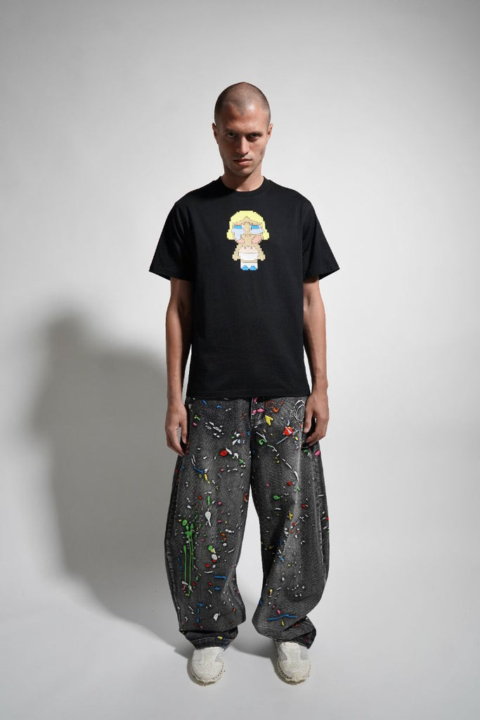 Short sleeve cotton jersey T-shirt. Signature "8-Bit" pixelated silicone appliqué at chest and screen print on the back. MHRS logo woven loop label at back hem.