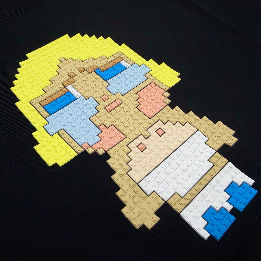 * Exclusively developed "BLONDE CRYING AGAIN" 8-Bit appliqué an print
