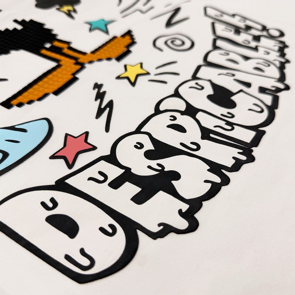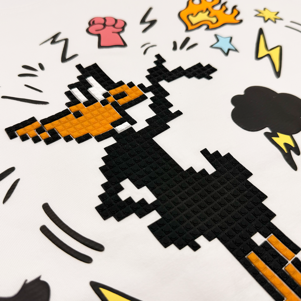 * Exclusively developed "DESPICABLE DUCK" 8-Bit appliqué and puff print