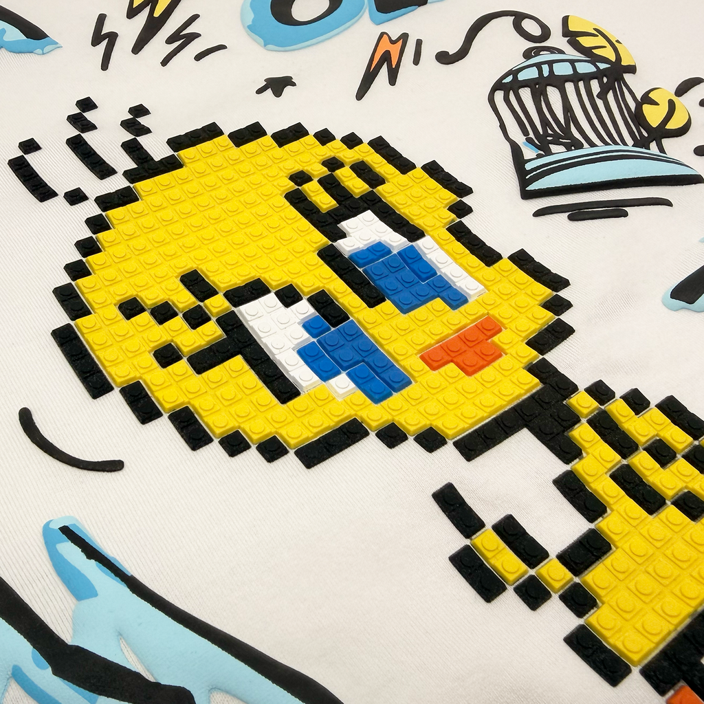 * Exclusively developed "BAD OL BIRDIE" 8-Bit appliqué and puff print