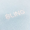 * White B.L.I.N.G. logo directly embroidered at wearers front left chest