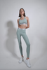 "BLING" KNIT SPORTS BRA-Cotton ribbed Seafoam Green sports bra with custom B.L.I.N.G jacquard trim at hem.