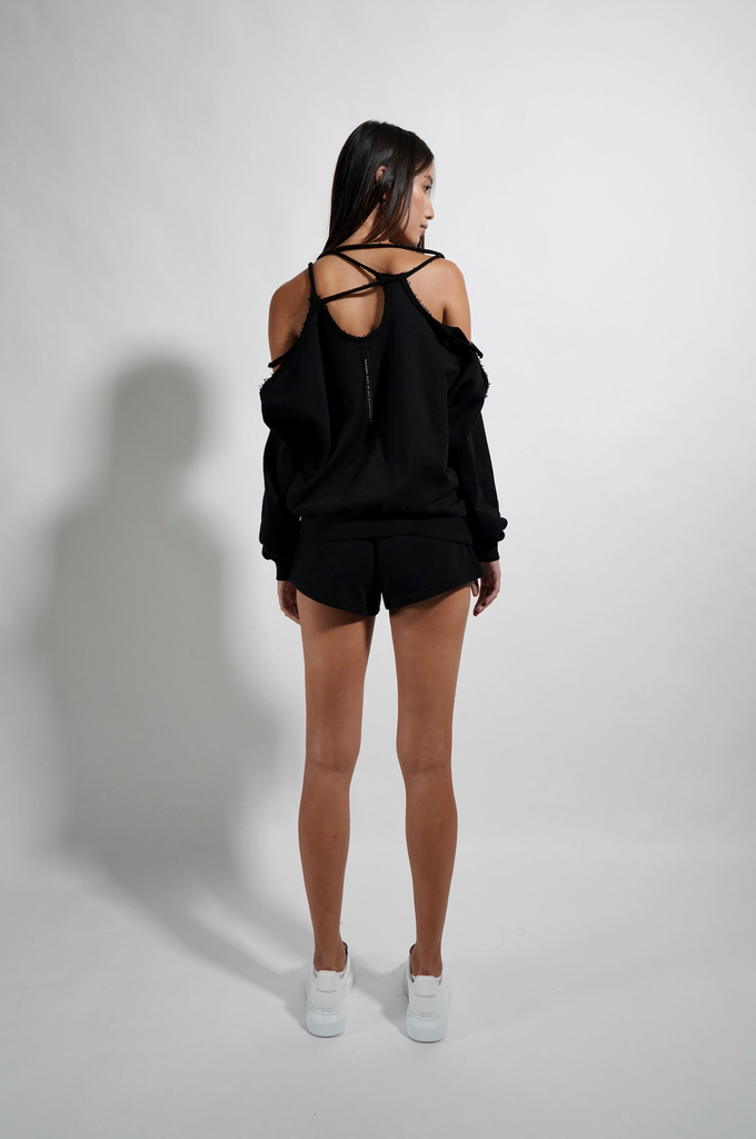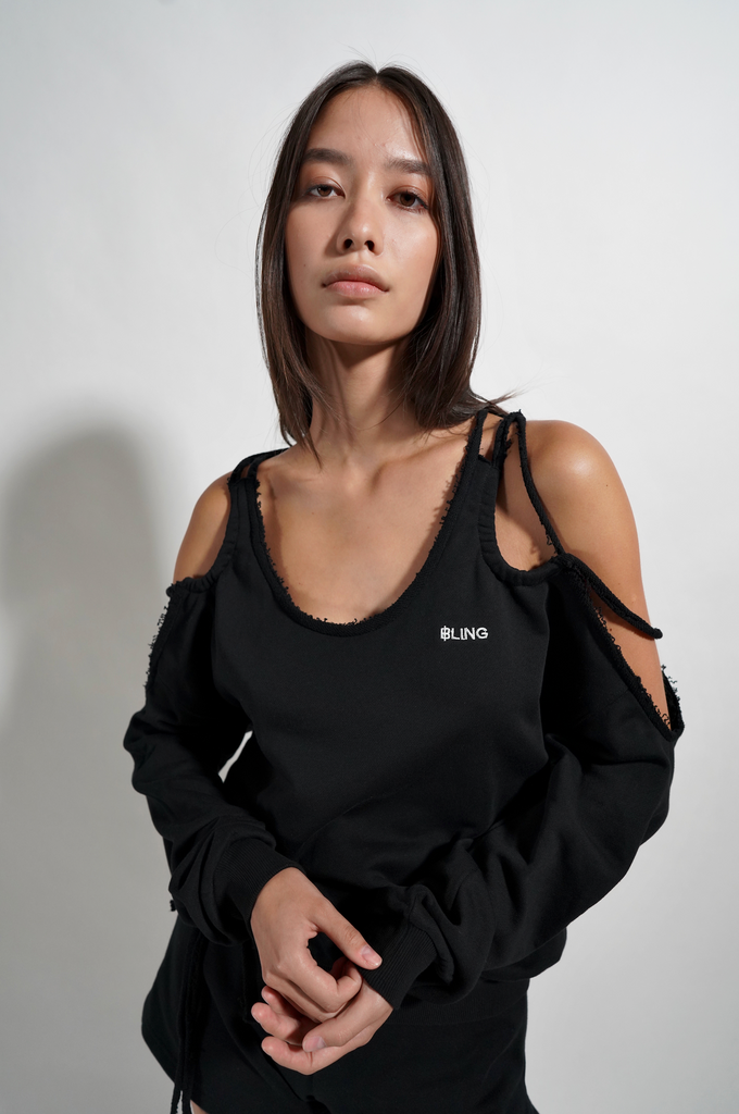 BLW08BC-K21 "BLING ASYMMETRICAL TWISTED LONG SLEEVE TOP"