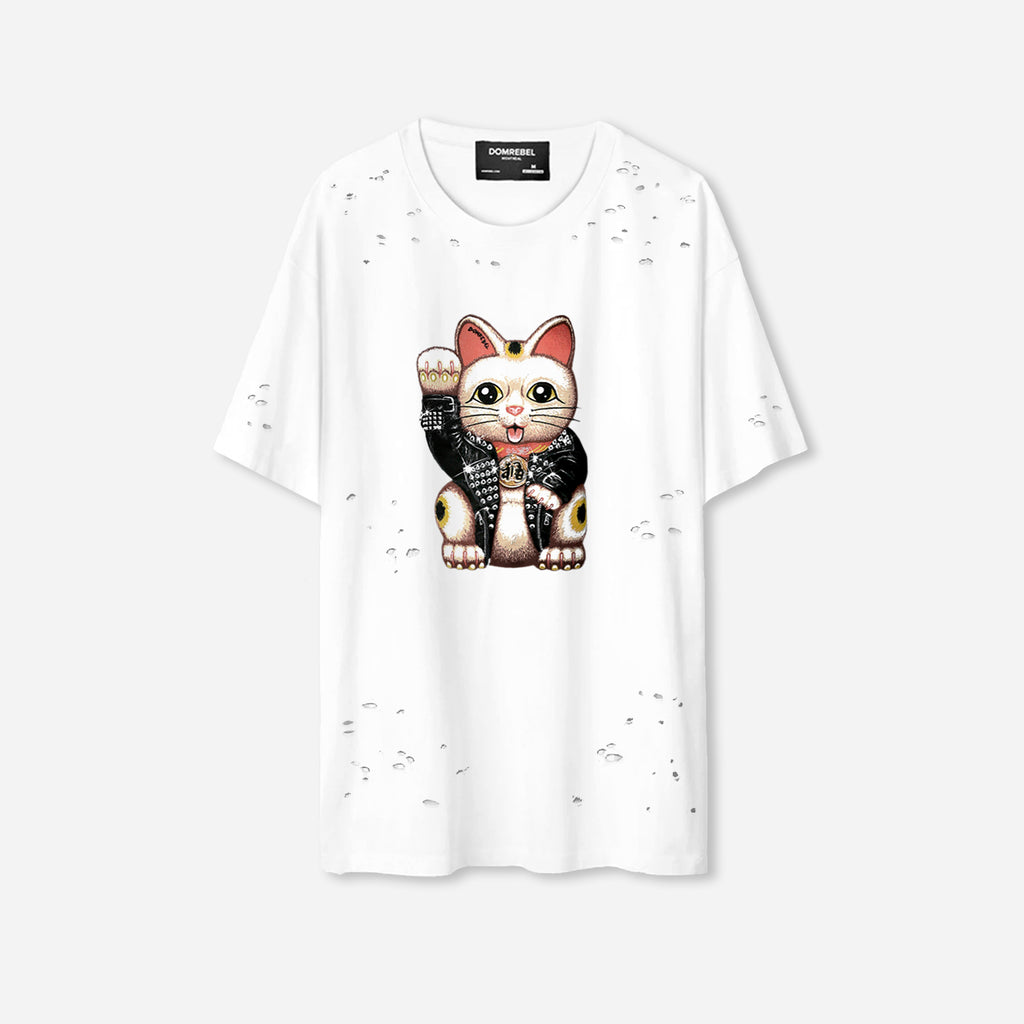 Short sleeve cotton jersey T-shirt. DOMREBEL printed artwork.