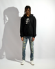 GMC08BB-KHS07 "SKULL" HOODIE Cotton french terry oversized drop shoulder hoodie with a custom hand set Austrian cubic zirconia diamond-cut crystals in White, Black Diamond, and Jet Black to create a skull graphic