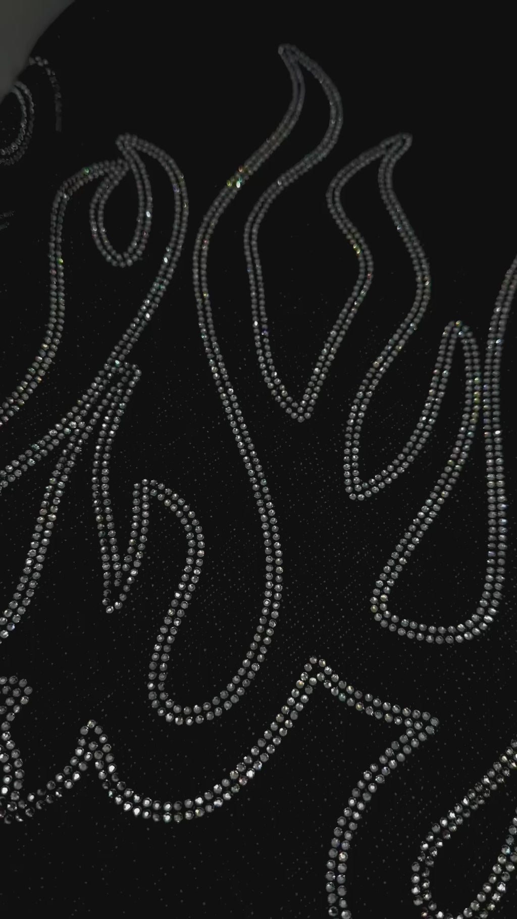 * Hand set jet black and white crystal Austrian cubic zirconia stones to create a flame