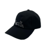 Black cotton twill dad hat with a white crystal stoned original Haculla logo