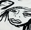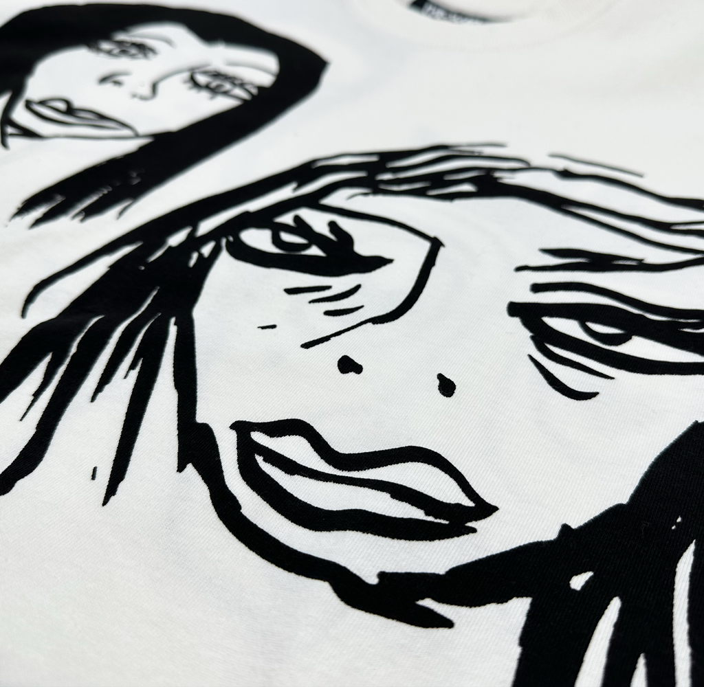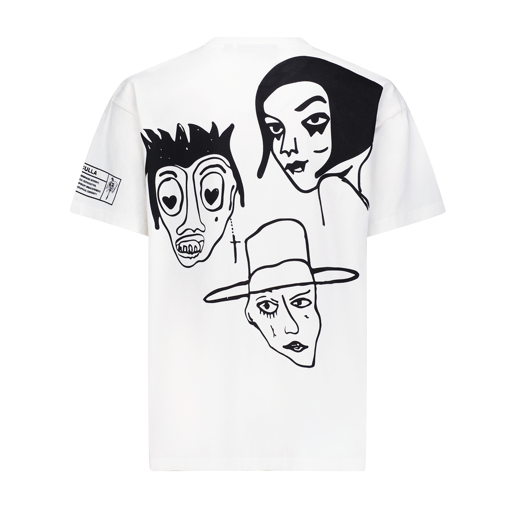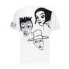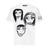 Off-white cotton vintage distressed oversized T-shirt with 6 allover waterbased print original Harif Guzman faces