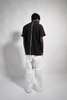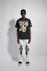 Black cotton vintage distressed, oversized, drop shoulder t-shirt with a custom vintage band tee graphic on the chest and silver metal piercing hardware at the neckline