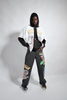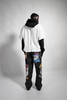 Black Vein Washed denim cotton wide leg denim jeans with allover custom vintage band tee graphics