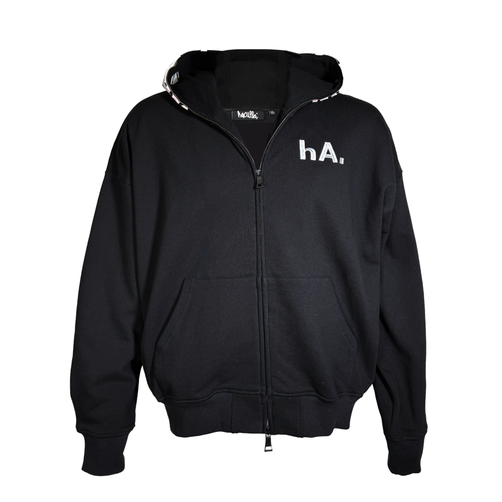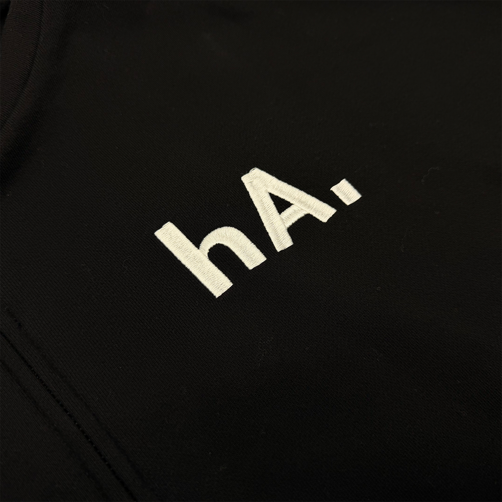 * 3D embroidery of "hA." on wearers left chest