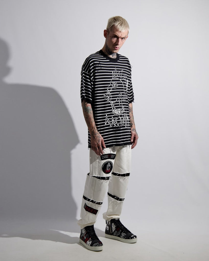 Black and white cotton "Hac Punk" jaqcuard over-sized drop shoulder tee sweater