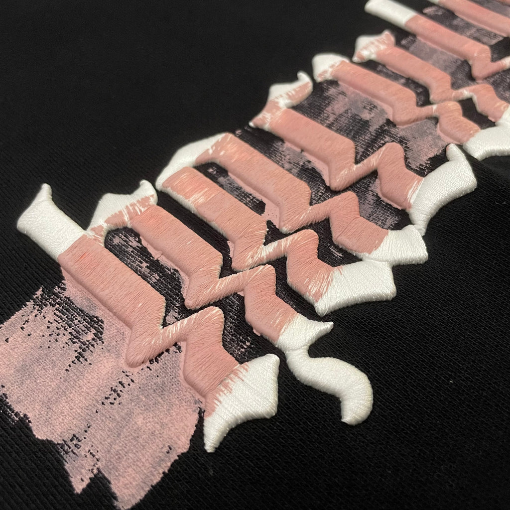* Off-White "Haculla" 3D direct embroidery with Dusty Pink paint swipe across on the front