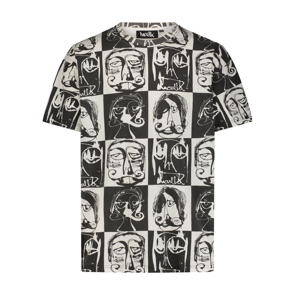 Off-White cotton oversized, drop shoulder T-shirt with a custom allover Haculla artwork waterbased checker print