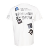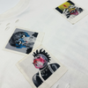 Off-White cotton, vintage wash, oversized T-shirt with a back print and 9 colorful Haculla monsters printed onto canvas patches to look like polaroids