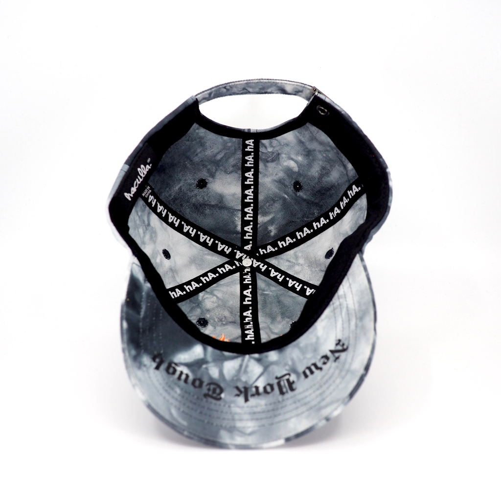 Black/white tie dye cotton "Eyes on Fire" Dad baseball cap from Haculla featuring a curved peak and an adjustable fastening.
