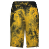 Fire tie dye knit shorts with chenille EMBROIDERY "Burning Inside" above hem.