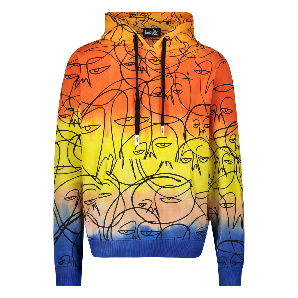 Cotton "One of a Kind" all over printed, 5-color dip dyed, over-sized pull-over hoodie