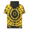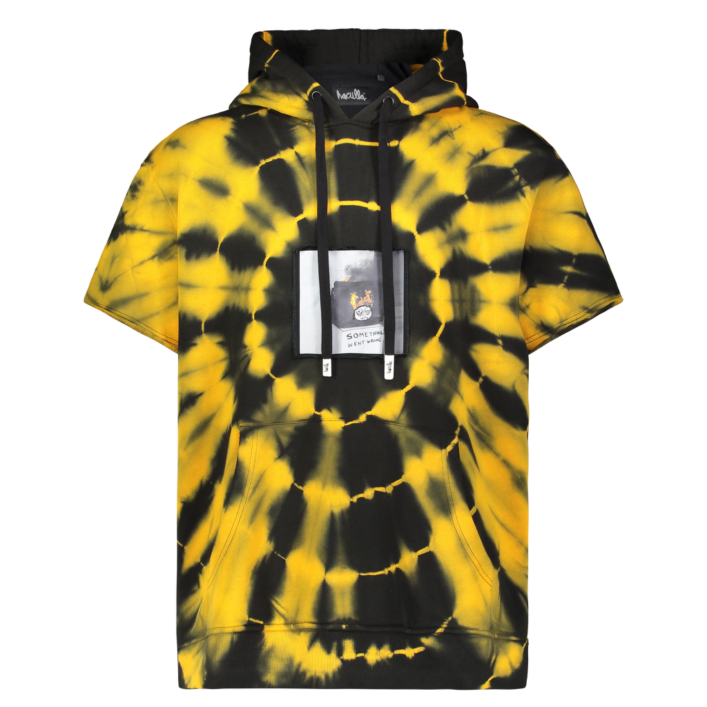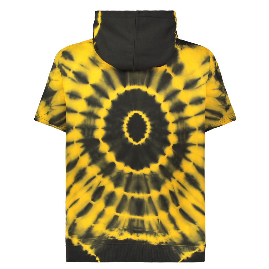 Circle fire tie-dye cotton "TV" appliqué over-sized short sleeve pull-over hoodie
