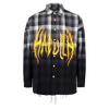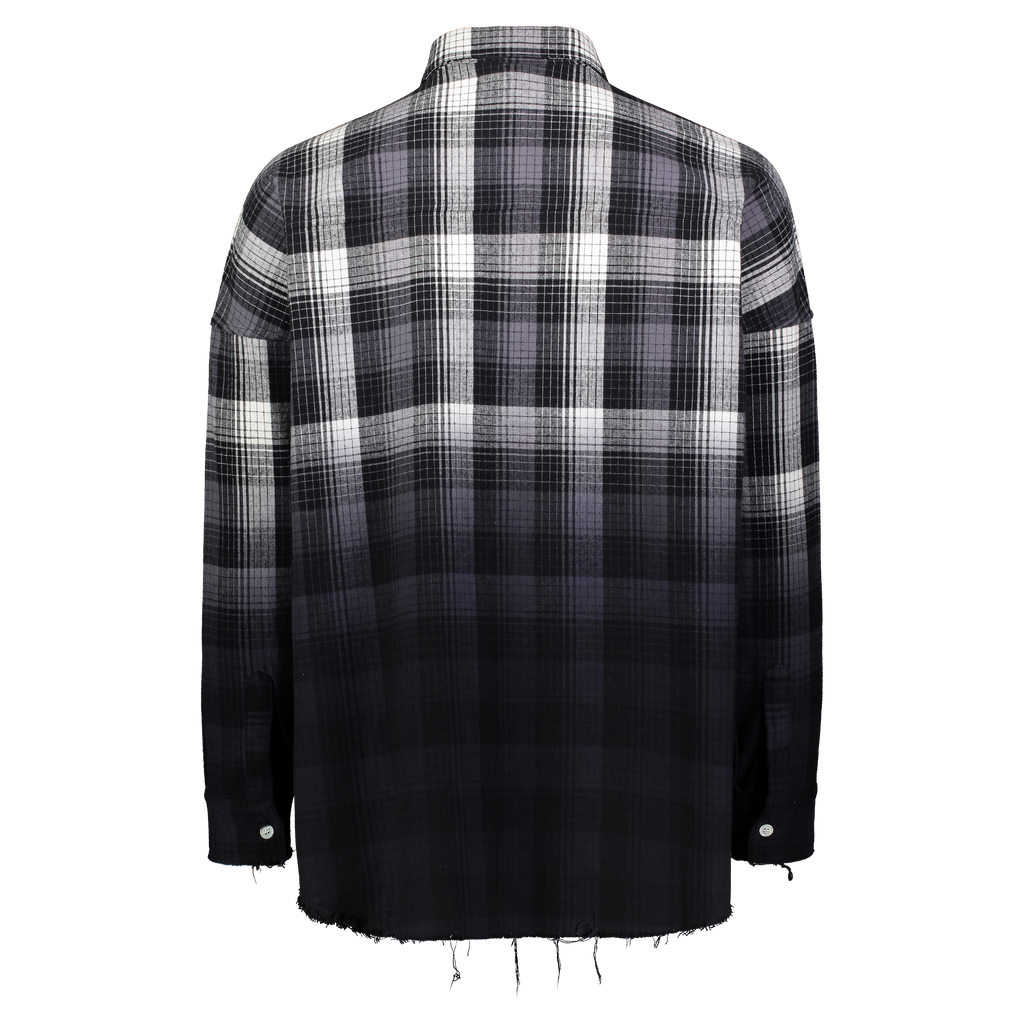 Cotton dip-dye plaid over-sized, long-sleeved button down shirt with embroidery detail on front chest