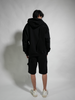 Black Cotton French Terry knit shorts, deconstructed mix of french terry face side and reverse side raw edge cut and sew construction with branded multi draw cords, an elastic waistband and MHRS signature tyvek barcode above back pocket
