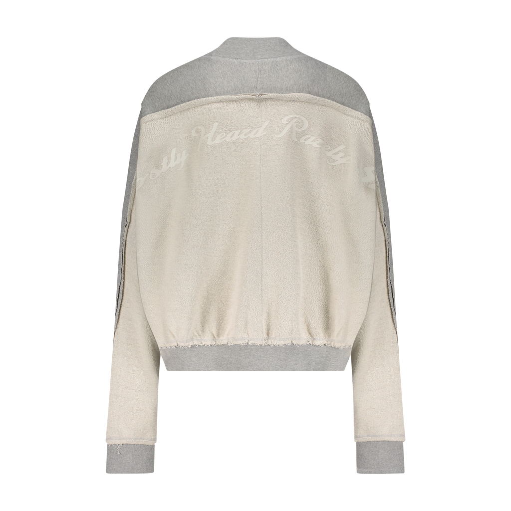 * Deconstructed exaggerated over-sized crewneck silhouette with exposed raw edge seams