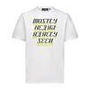 Cotton box tee with layered puffer print text and shadowed waterbase text graphic