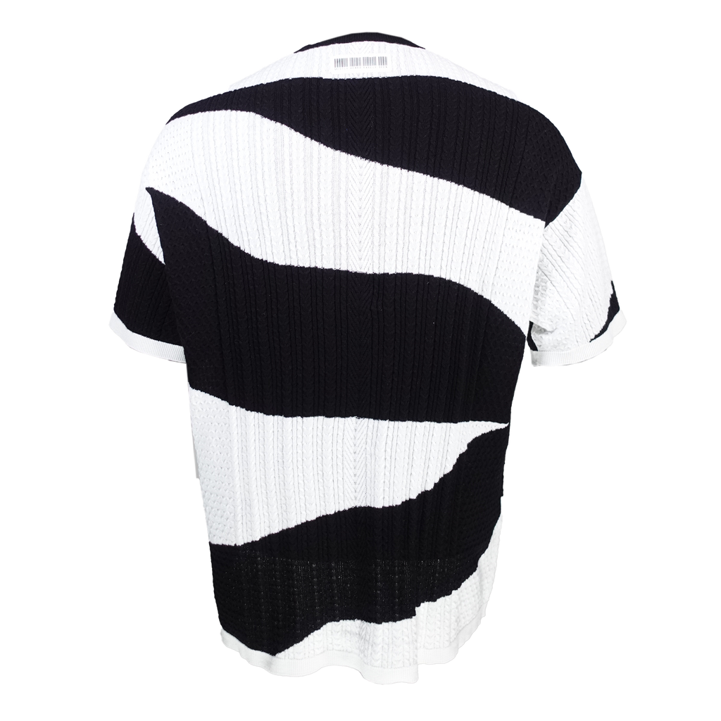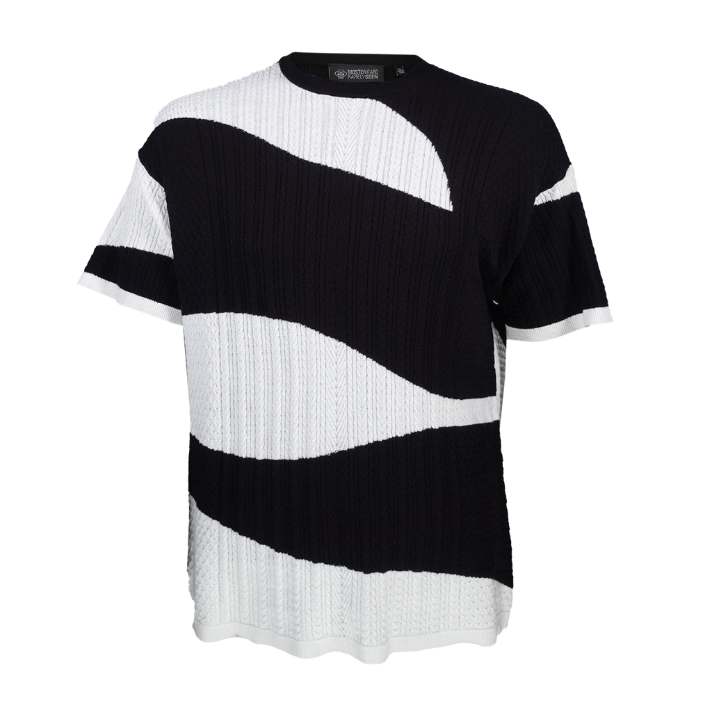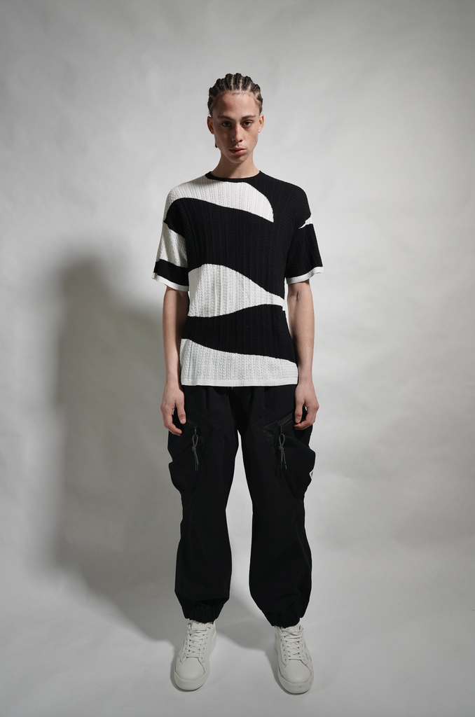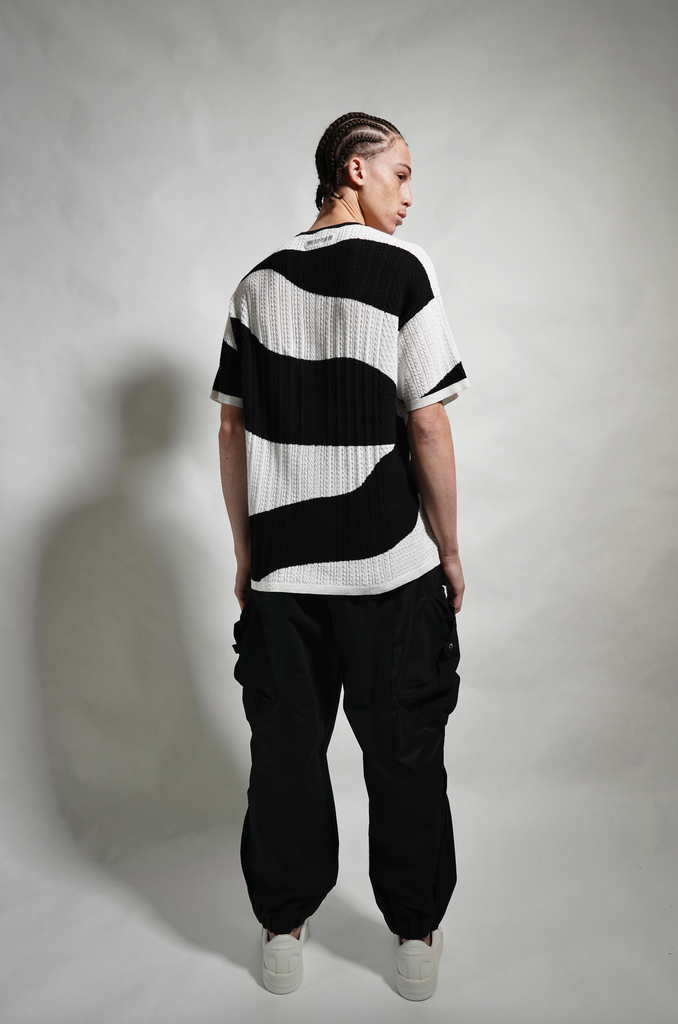 Black and cream custom camo cable knit cotton oversized, drop shoulder t-shirt sweater.