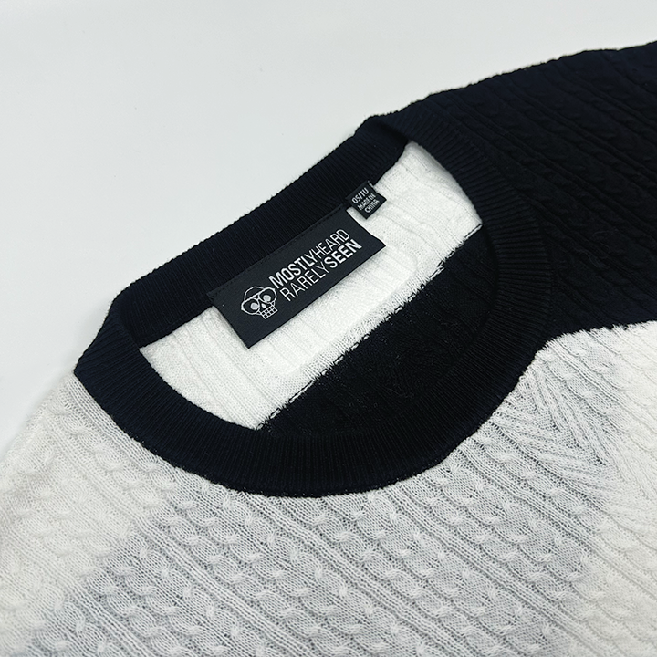 * Two toned hand set intarsia cable knit cotton sweater tee