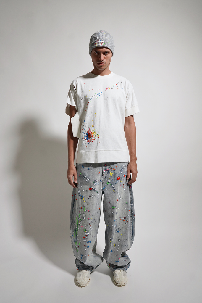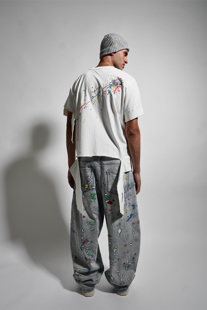 DECONSTRUCTED PAINT EMBROIDERED TEE