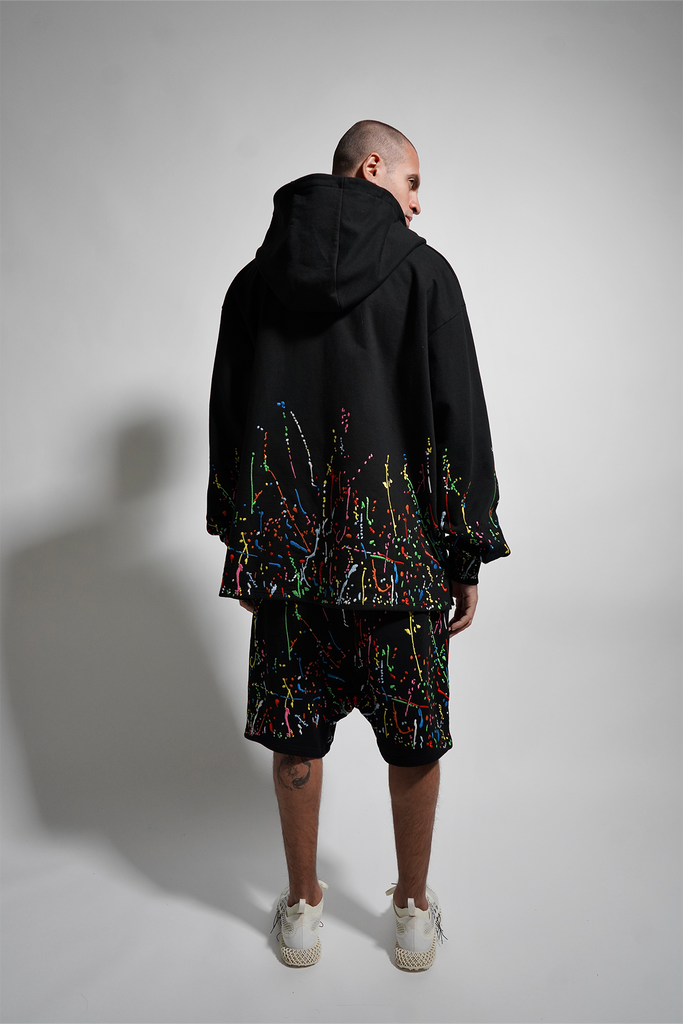 PAINT EMBROIDERED DROP CROTCH KNIT SHORT