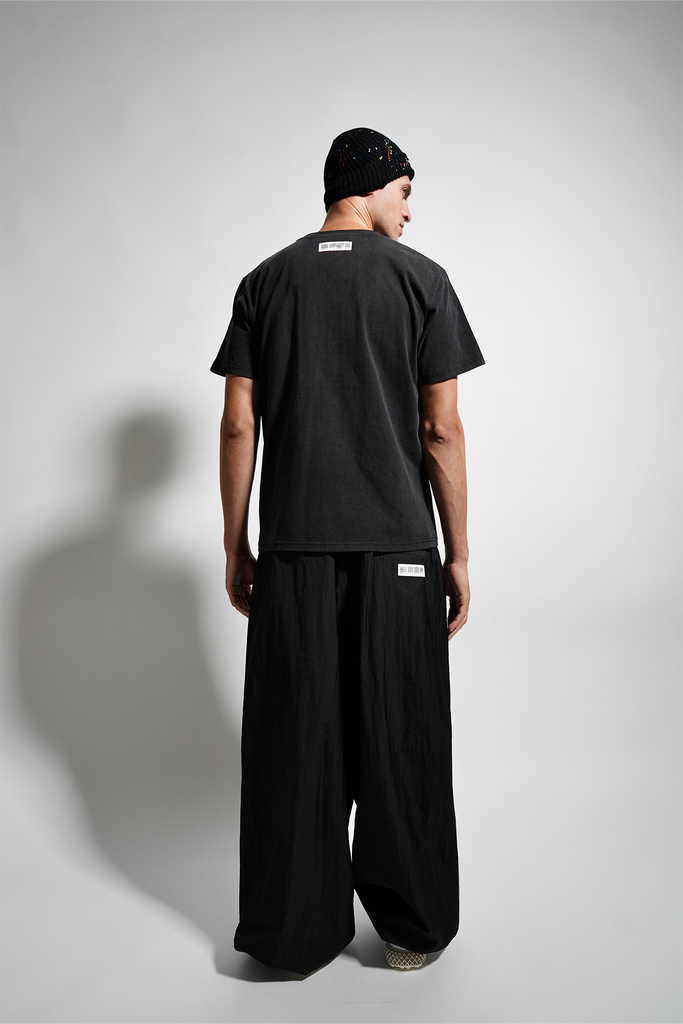 Cotton/polyester blend fabric extra oversized, wide, balloon leg sweatpants with trim detailing, adjustable elastic waistband and ankles and MHRS signature tyvek barcode