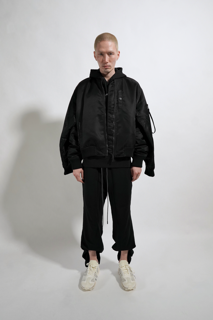 * 100% eco nylon black traditional MA1 sateen sourced from Japan