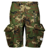 Pullover camouflage cargo short with floating diagonal zipper fly