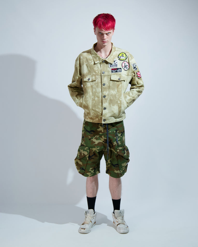 MH02BA-X05 "Felix Rarely Seen" Cotton Tie-Dye Twill Trucker Jacket in Khaki / Camo